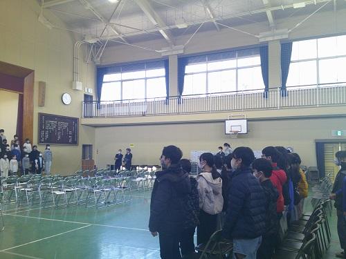 今日の3,4時間目に卒業式予行練習を行いました。在校生は残念ながら5年1組が学級閉鎖中ということで、5年生は2組だけの参加となり少し寂しい感じになってしまいました。