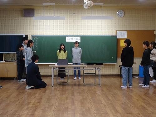 次に児童会の子ども達から冬休みの約束として、ドラえもんの歌を替え歌にして動画で紹介してくれました。分かりやすく、思わず口ずさみそうです。