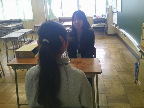 「あゆみ」渡し 担任から2学期の頑張りを伝えています。
