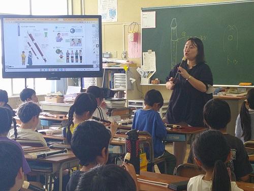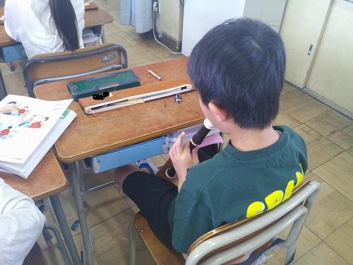 この日は、持ち方や姿勢、息の入れ方など基本となることを一つ一つ丁寧に学びました。はじめは穴を上手に押さえられず音を出すことに苦戦する様子も見られましたが、友達と教え合いながら少しずつきれいな音が出せるようになってきました。