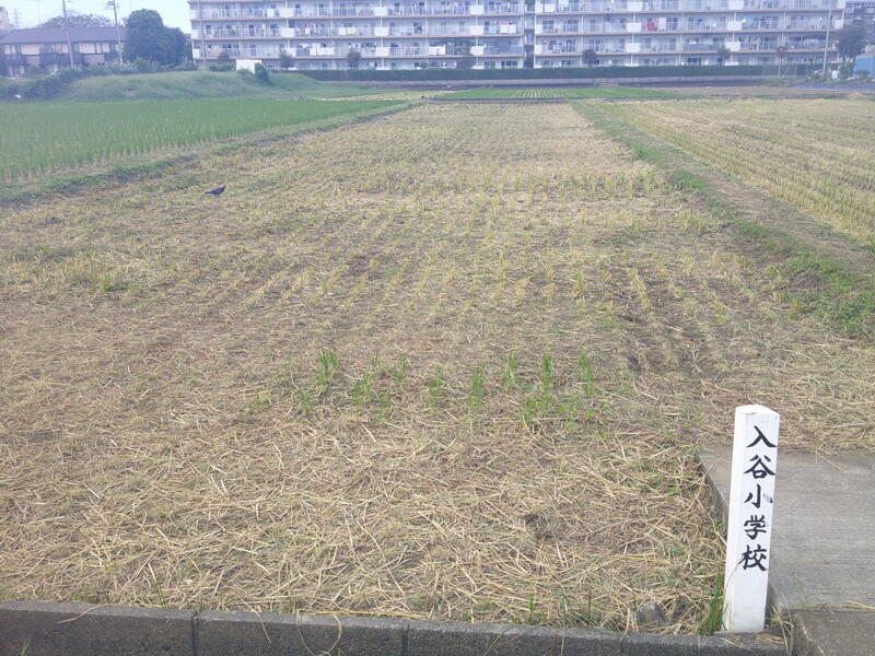【稲刈り後の入谷小学校の田んぼ】