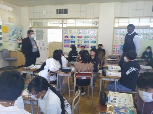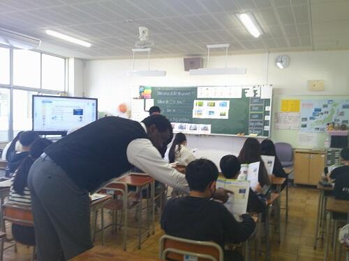 英語専科教員とALTの6年生の外国語の授業を参観しました。授業を行っている「ワールドルーム」は、外国語の学習をするにふさわしい掲示物などで環境が整えられていて、自然とこの教室に入ると英語モードにスイッチが入ります。ALTのネイティブな発音による範読を子ども達はよく聞き、上手に真似しながらよい発音で文章を読むことができていました。また、今日の定型文に自分で選んだ単語をあてはめペアと話すという場でも、しっかりと発音に気を付けながら話し、友達とコミュニケーションがとれていました。間違いを恐れなくてよいという安心した雰囲気の中で学習が進められていて、子ども達ものびのびと学習することができていました。