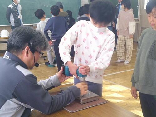 初めて使う電動工具に少し緊張しながらも、上手にできました。