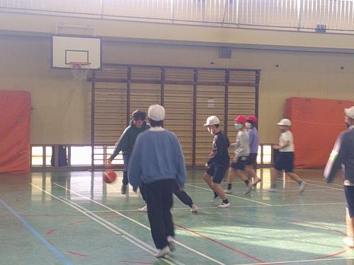 バスケットボールは、担当の先生も一緒に楽しんでいました。