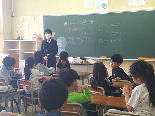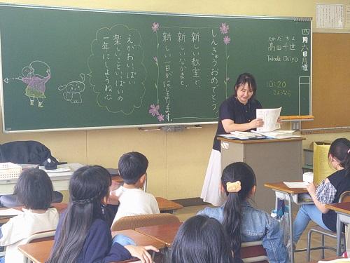 教室では、新しい先生と友達ということもあり、緊張していましたが、すぐに笑顔が増え新しい学級の輪ができていました。