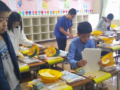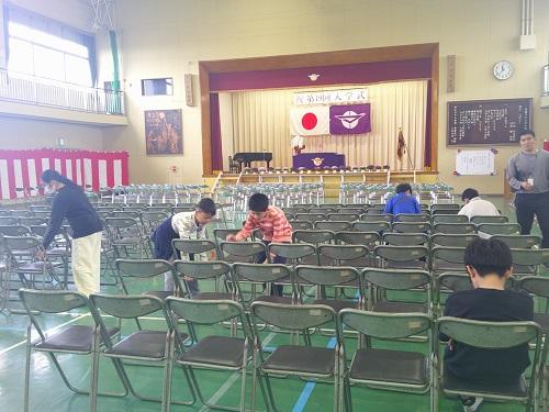 明日は入学式です。入学式に向け、6年生と先生達が準備を行いました。会場となる体育館の椅子並べや清掃、教室の飾りつけなど、入学してくる一年生もことを思いながら、一つひとつの仕事に心を込めて取り組む姿が見られました。